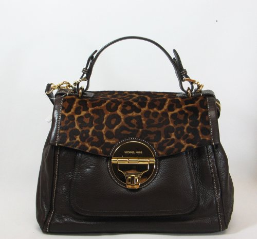 !±8± NEW AUTHENTIC MICHAEL KORS LEOPARD TOP HANDLBE HANBAG TOTE (Brown/Gold)